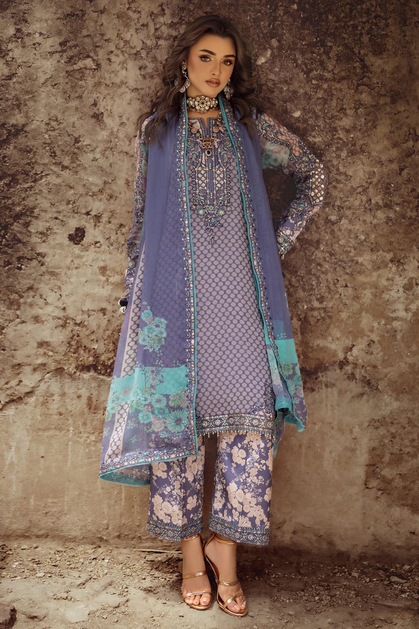 • EMBRIODERED PRINTED CHIFFON FRONT & BACK